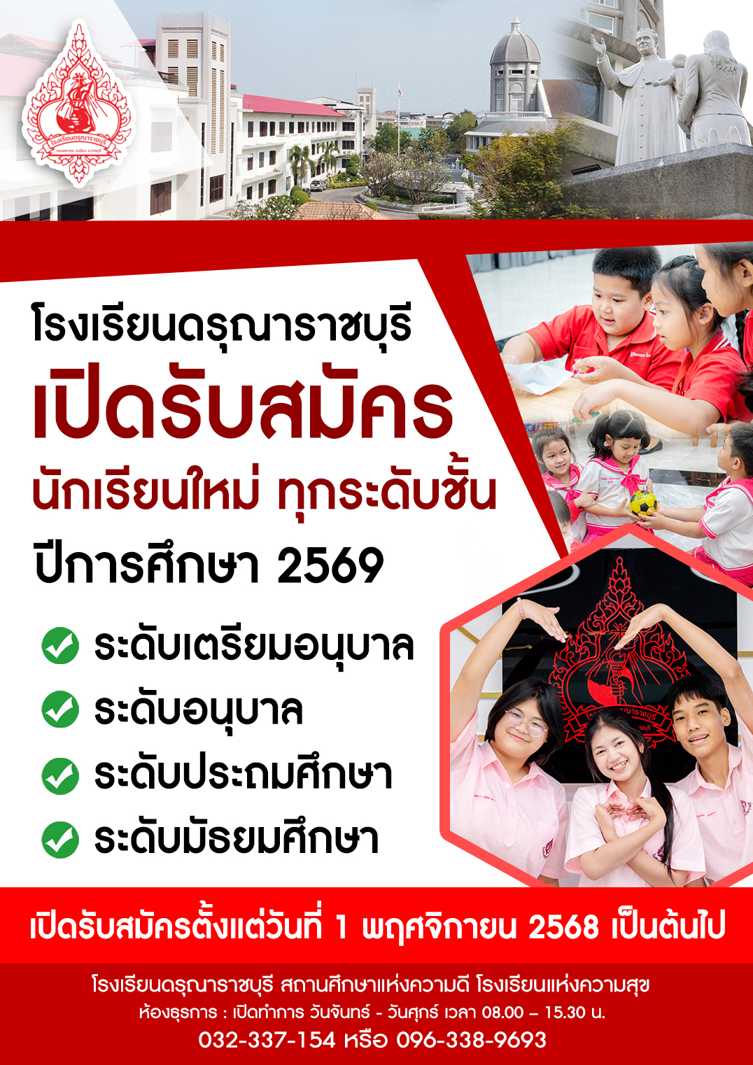 📌โรงเรียนดรุณาราชบุรี 📣เปิดรับสมัครนักเรียนใหม่ ปีการศึกษา 2569 ทุกระดับชั้น ✅เปิดระบบรับสมัครออนไลน์ ตั้งแต่วันที่ 1 พฤศจิกายน 2568 เป็นต้นไป