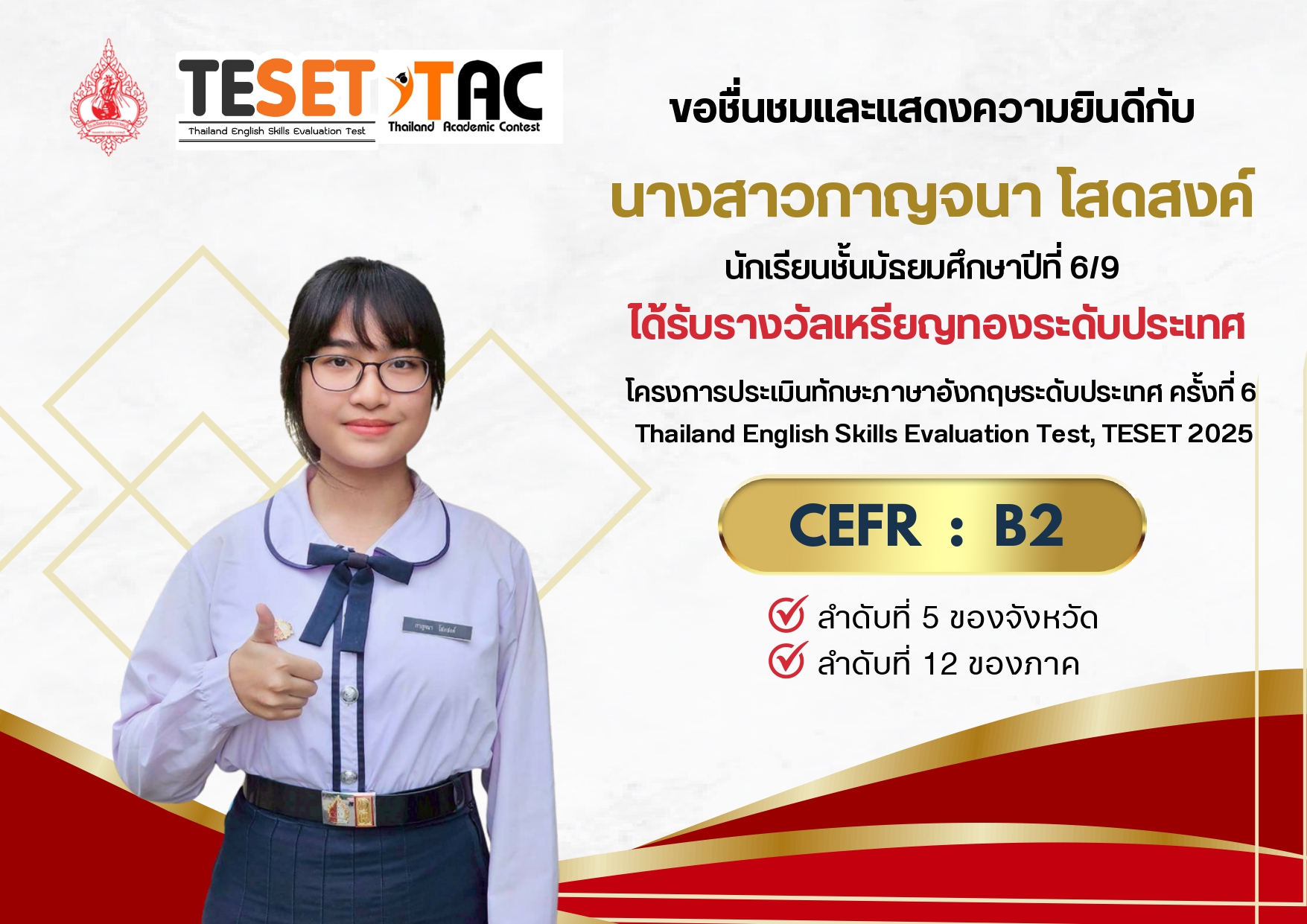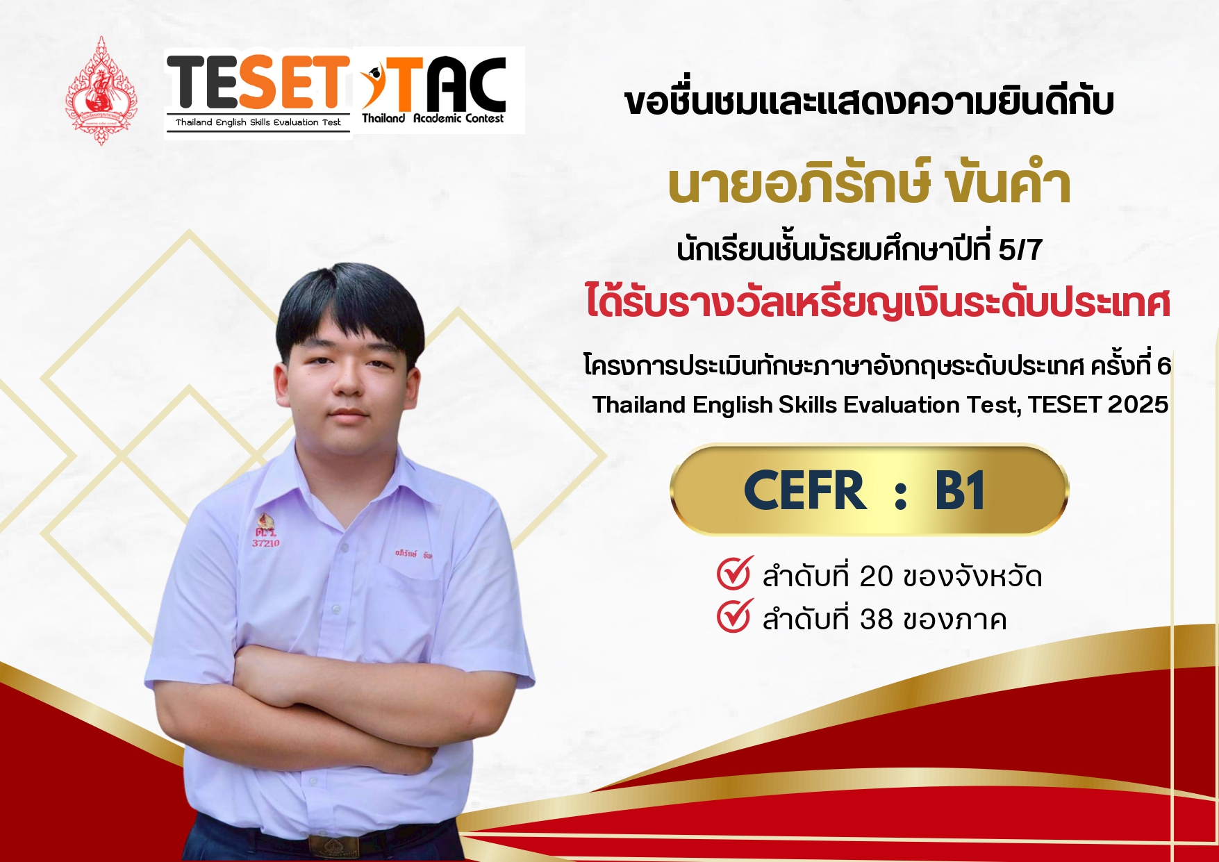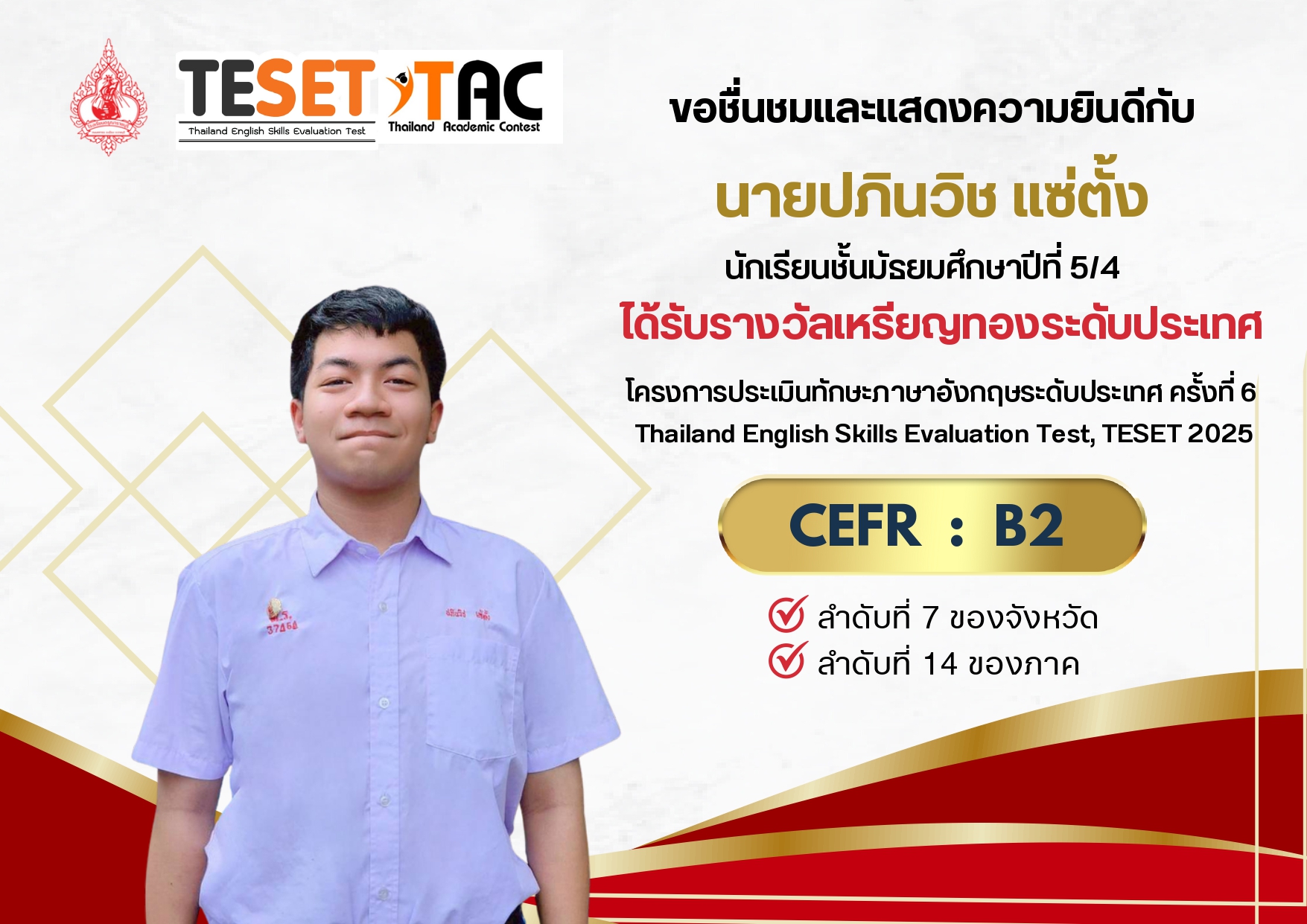 ได้รับรางวัลเหรียญทองระดับประเทศ ระดับ CEFR : B2